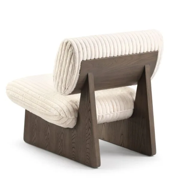 Enhance your decor with the Elena Armless Accent Chair, featuring a sleek wood base covered in light grey elm wood veneer matte and a crisp white fabric seat. A perfect blend of modern elegance and comfort for any room.