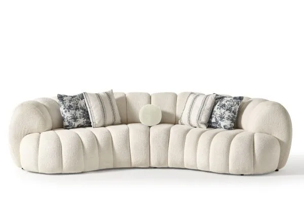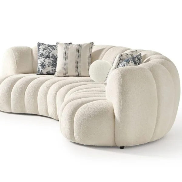 Graceful and inviting, this stunning Rhodes curved sofa flows like a gentle wave, bringing a sense of harmony and elegance to any space. Its plush, tufted design offers deep comfort, wrapping you in a warm embrace. Perfect for intimate conversations or moments of pure relaxation, this sofa transforms your living area into a sanctuary of style and serenity. A true statement piece, it blends luxury with comfort, making every gathering feel effortlessly special.