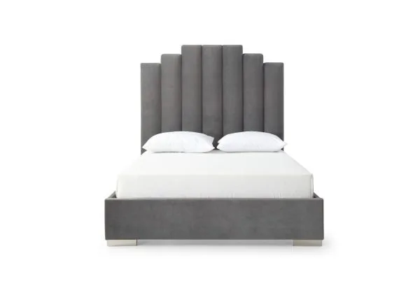 The Jordan Queen Bed is perfect for any modern bedroom. The bed comes fully upholstered with luxurious Grey 100% Velvet Fabric or White Faux Leather and includes two USB ports in the headboard for charging your devices. The chrome legs add a touch of elegance to the bed. Price Reflected Includes 40% Discount
