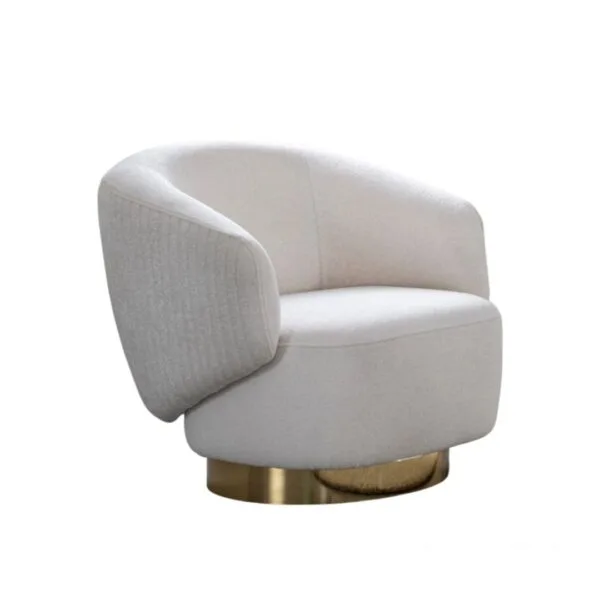 A sophisticated aesthetic language is expressed in the curved silhouette of the Erzin accent chair, with a striking visual impact, like the metal finish base.