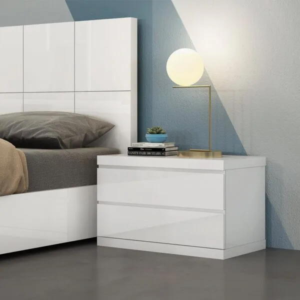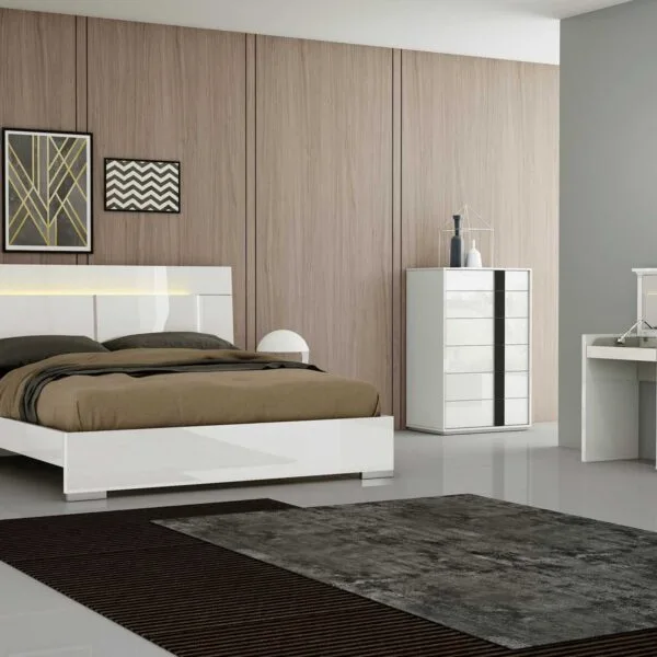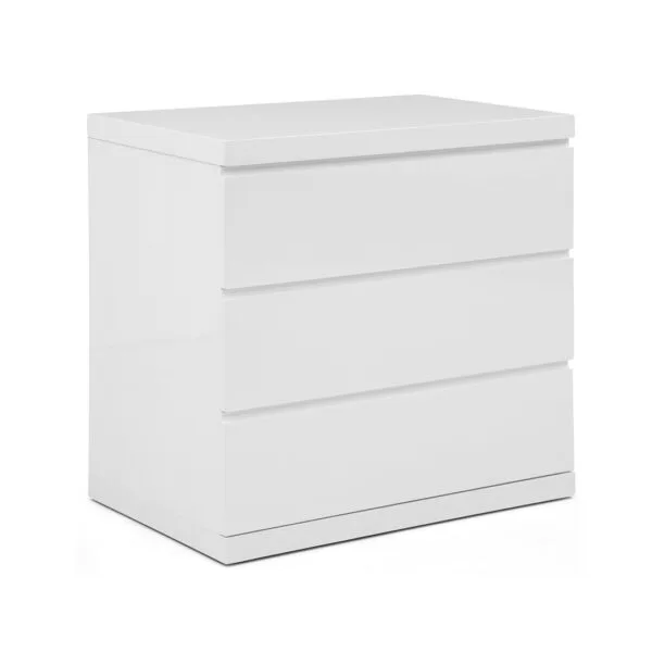 Kimberly Chest of drawers comes in high gloss white with self closing runners and matt black Handles.