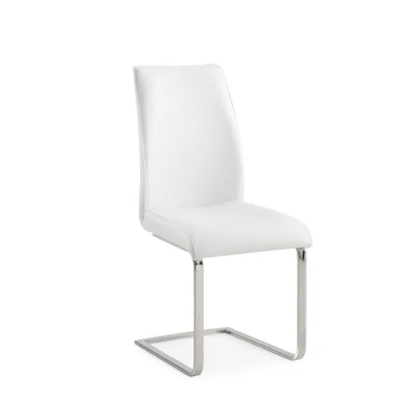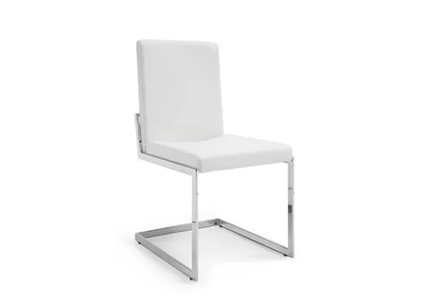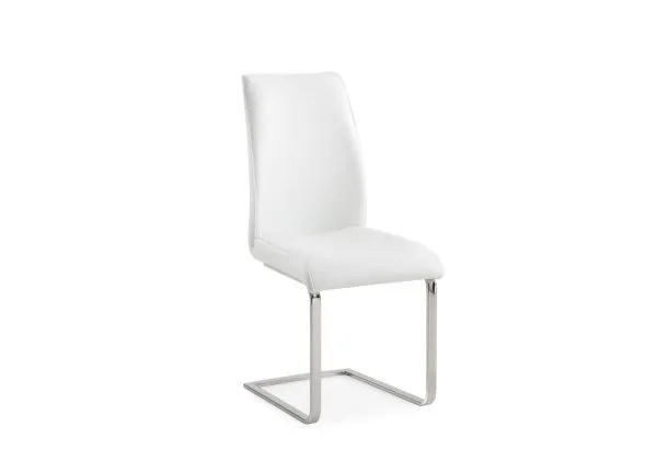 Chily Dining Chair, White Faux Leather, Chrome Frame and Base. Price Reflected Includes 60% Discount