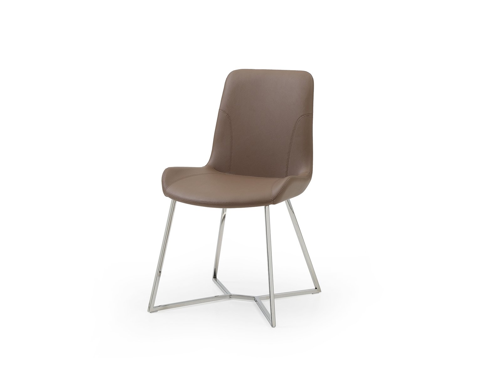 Our Aileen Dining Chair is the perfect choice for a more casual space, making a statement with its vibrant yellow or taupe faux leather and polished stainless steel base frame. Sold in sets of 2. Taupe Faux Leather, Polished Silver Stainless Steel Base. Yellow Faux Leather, Polished Silver Stainless Steel Base.