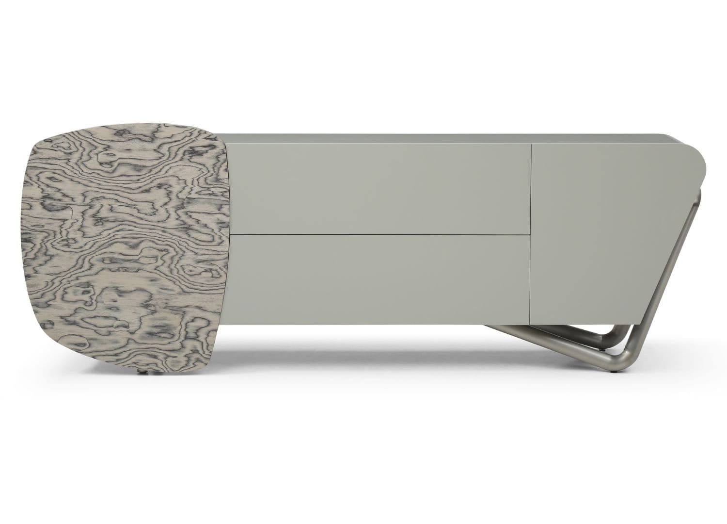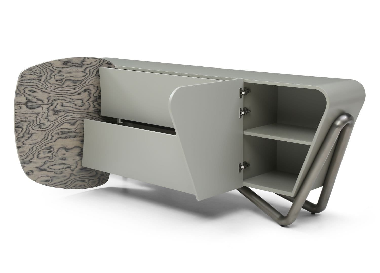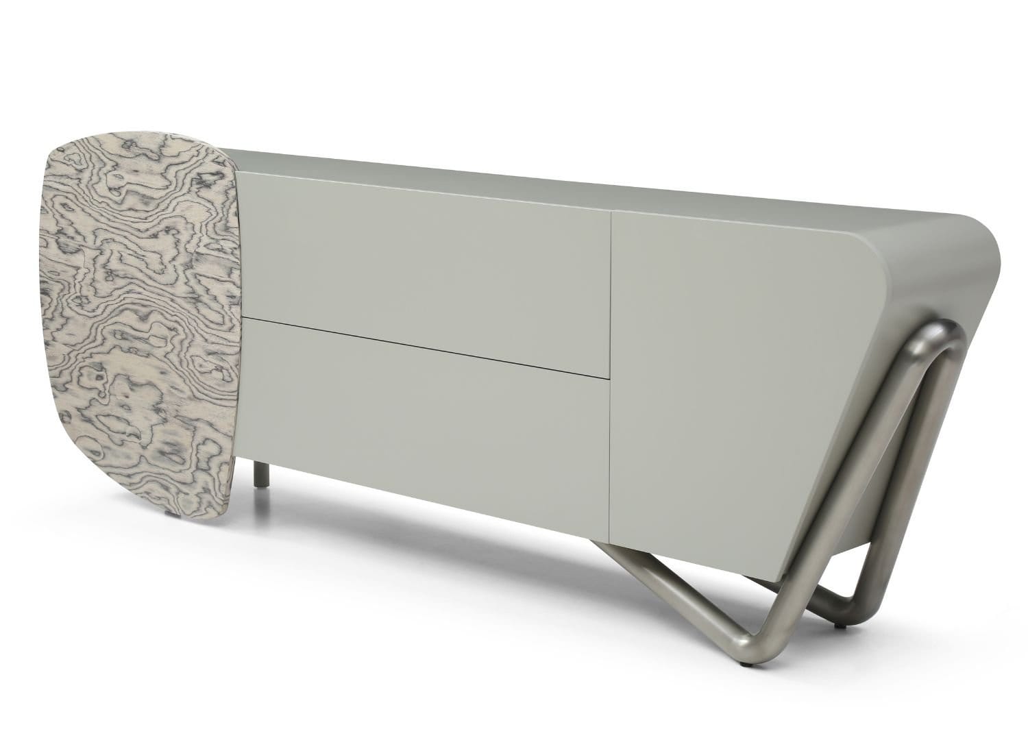 Anaconda Buffet: Grey Matte Lacquer Left Door Veneer Stainless Steel Bronze Nickel