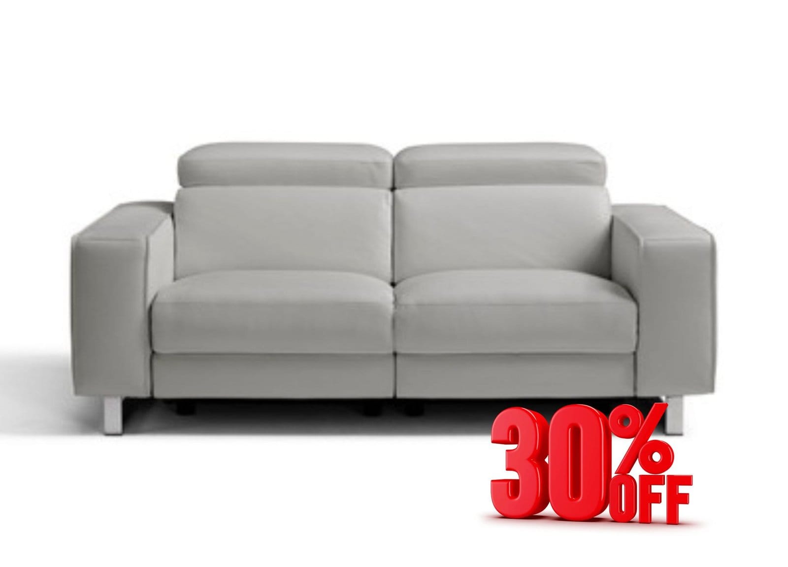 Augusto Love Seat 100% Made in Italy Light Grey top grain leather 1062 L09S 2 electric recliners. Price Reflected Includes 30% Discount,
