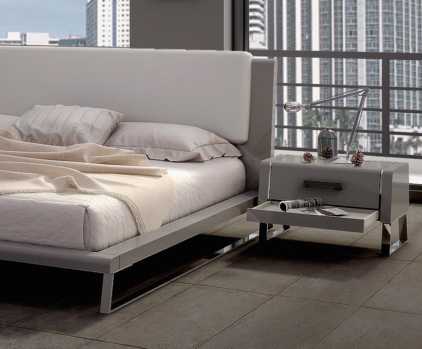 Bahamas Night Stand High gloss Taupe Stainless steel legs Self close drawers Price Reflected Includes 50% Discount