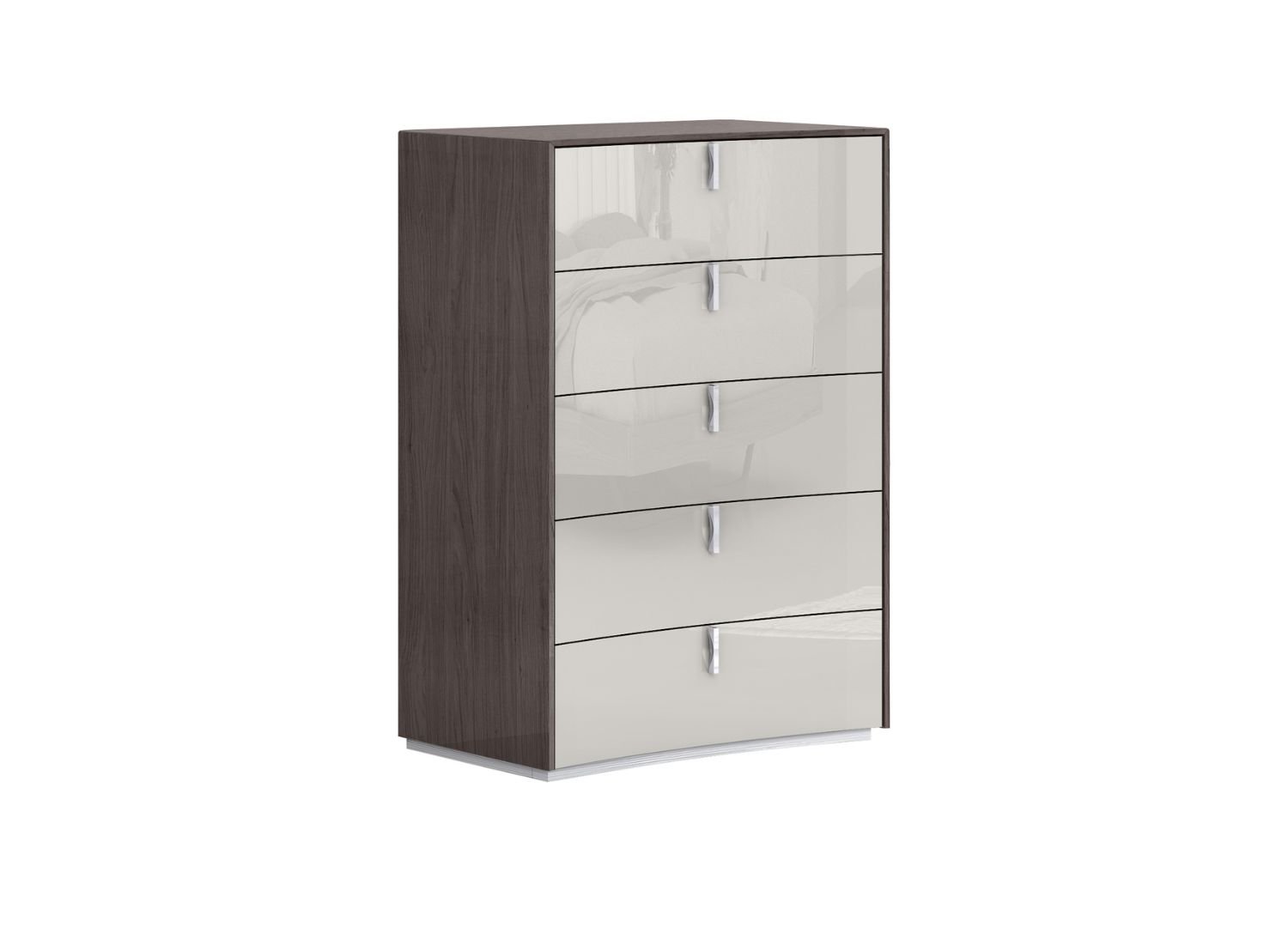 Berlin Chest of Drawers, High Gloss Chestnut Lacquer 5 Self-Closing Drawers in High Gloss Light Grey Lacquer Chrome Handles. Chest drawers complete the Berlin Bedroom Collection .