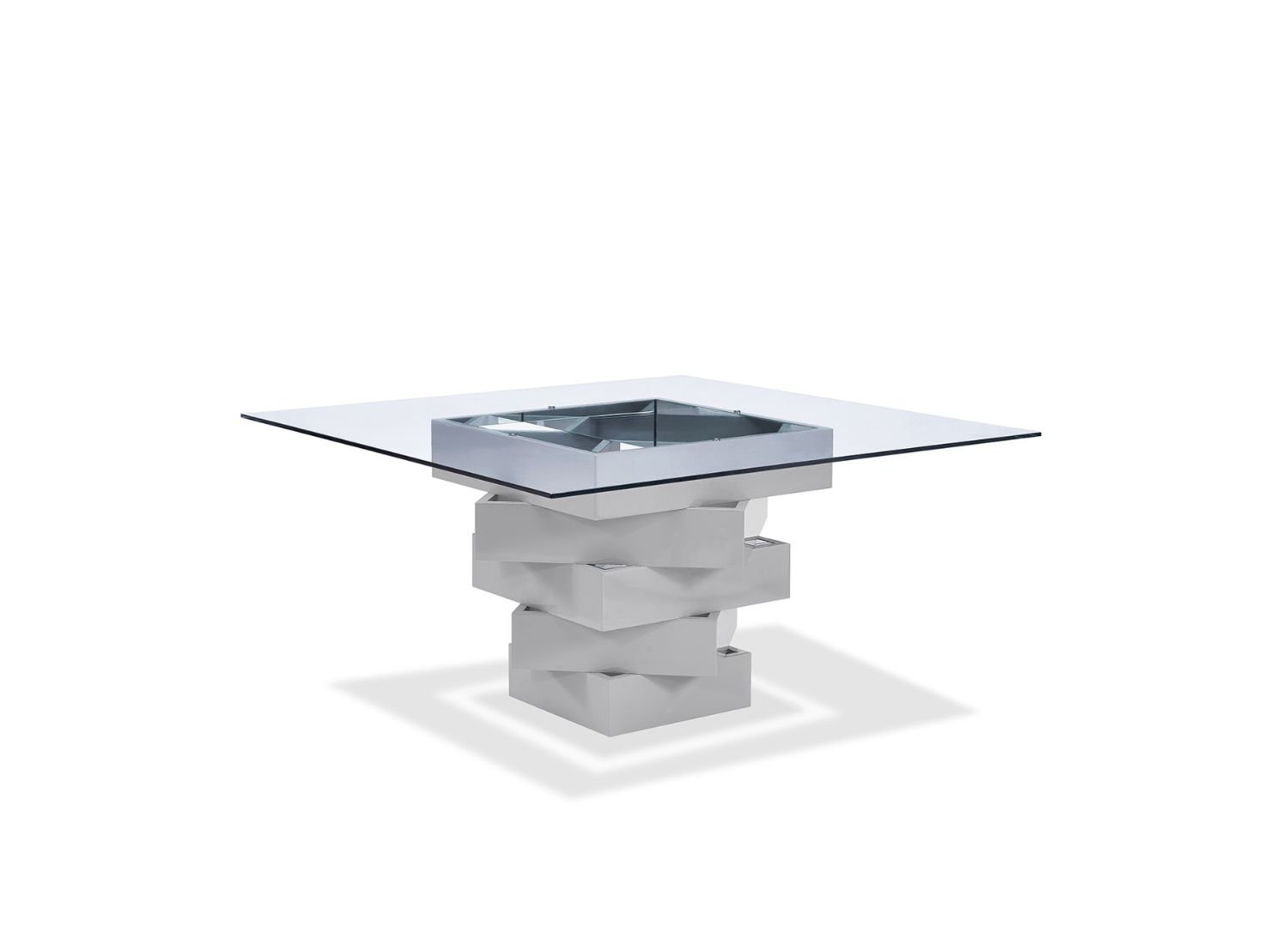 High gloss gray lacquer. Geometric base with mirrors. 12mm clear glass top.
