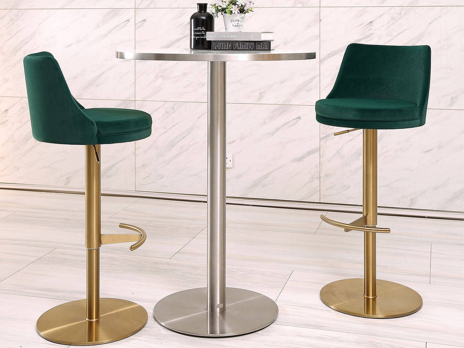 Carter Barstool, in Green Velvet, Adjustable Height with Gas Lift, Swivel Base in Gold Color.