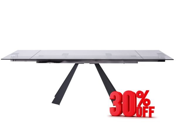 Extendable Dining Table, 10mm tempered clear glass top with Sanded black metal base. Extends from 63″ to 95″ Price Reflected Includes 30% Discount