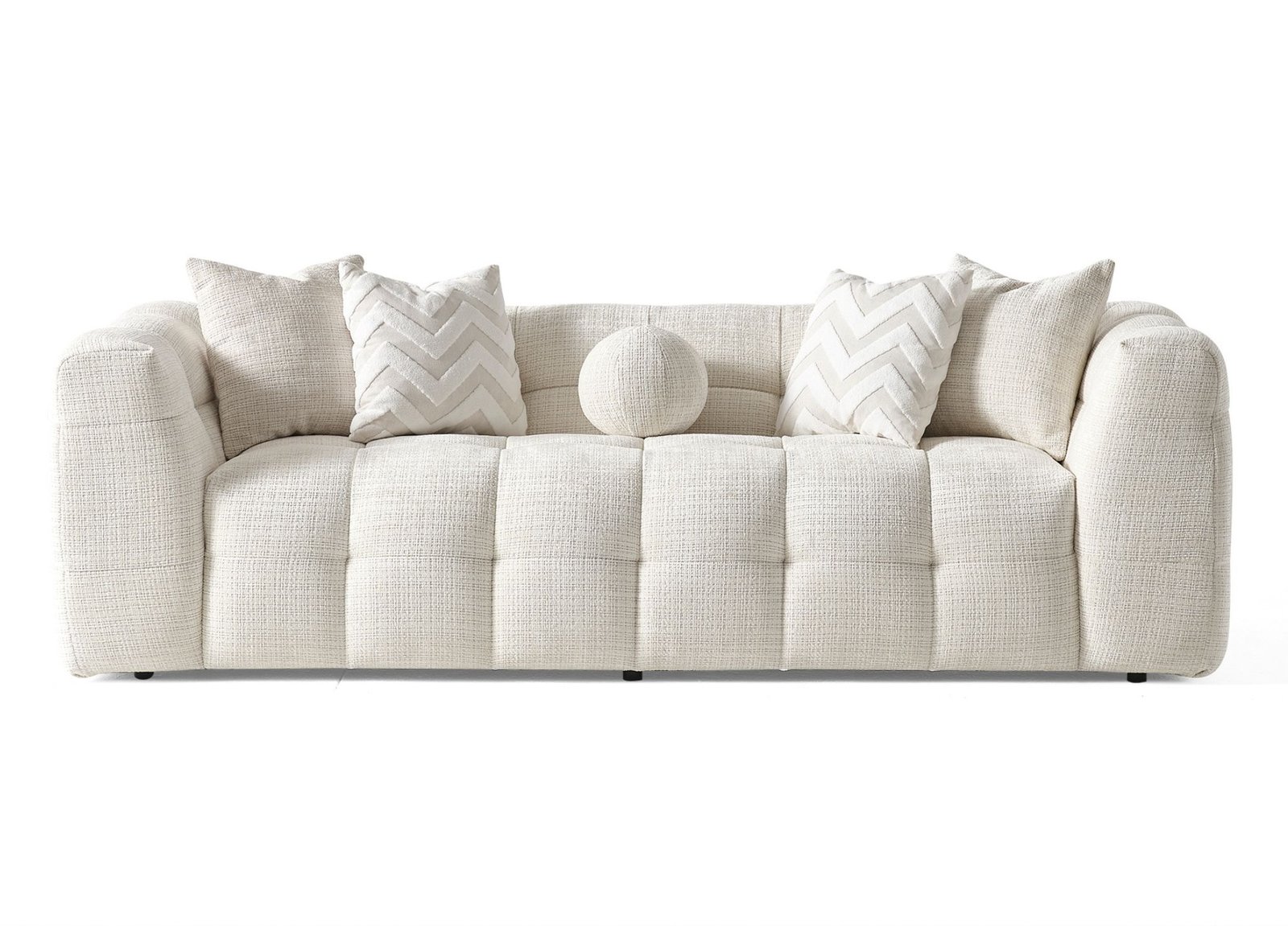 Cloud Sofa Upholstered in high-quality Fire-Resistant Beige Chenille Fabric Four Square Cushions and a Ball cushion Plush Seating is enhanced By 32-density