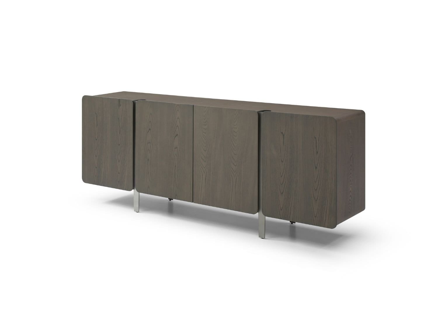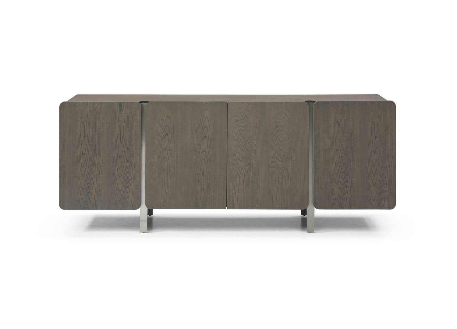 Elena Buffet: Grey Ash Veneer Brushed Nickel Stainless Steel Legs