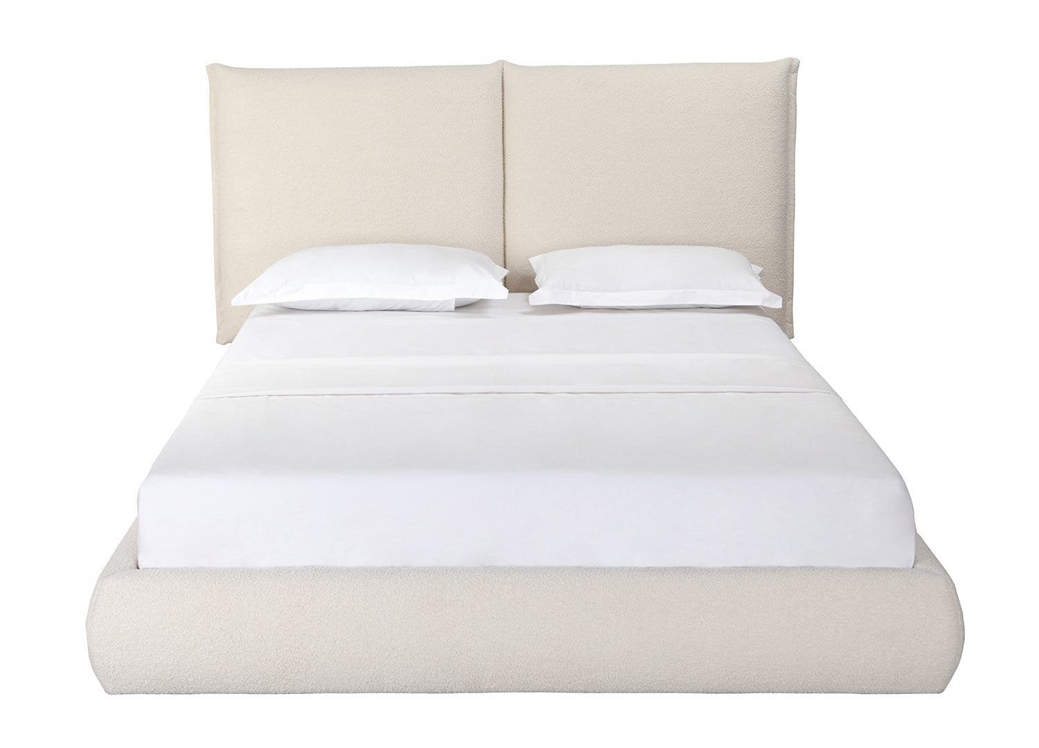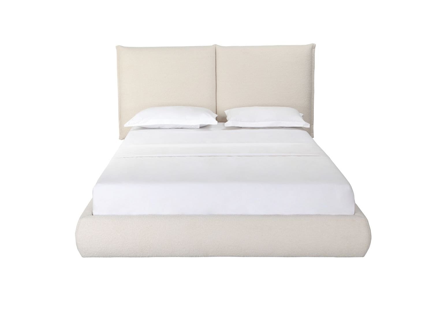 Eric Bed Queen, Fully Upholstered, Beige Fabric, Split Headboard Design.