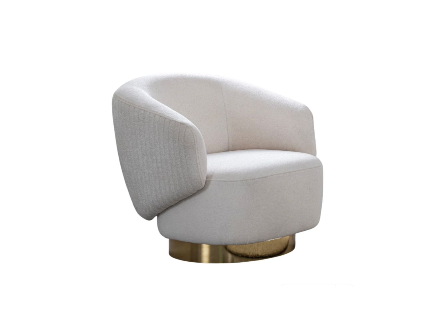 Erzin Swivel Accent Chair, Available in White Fabric, Swivel Polished Gold Color Base or in Black Fabric, Swivel Silver Nickel Base.