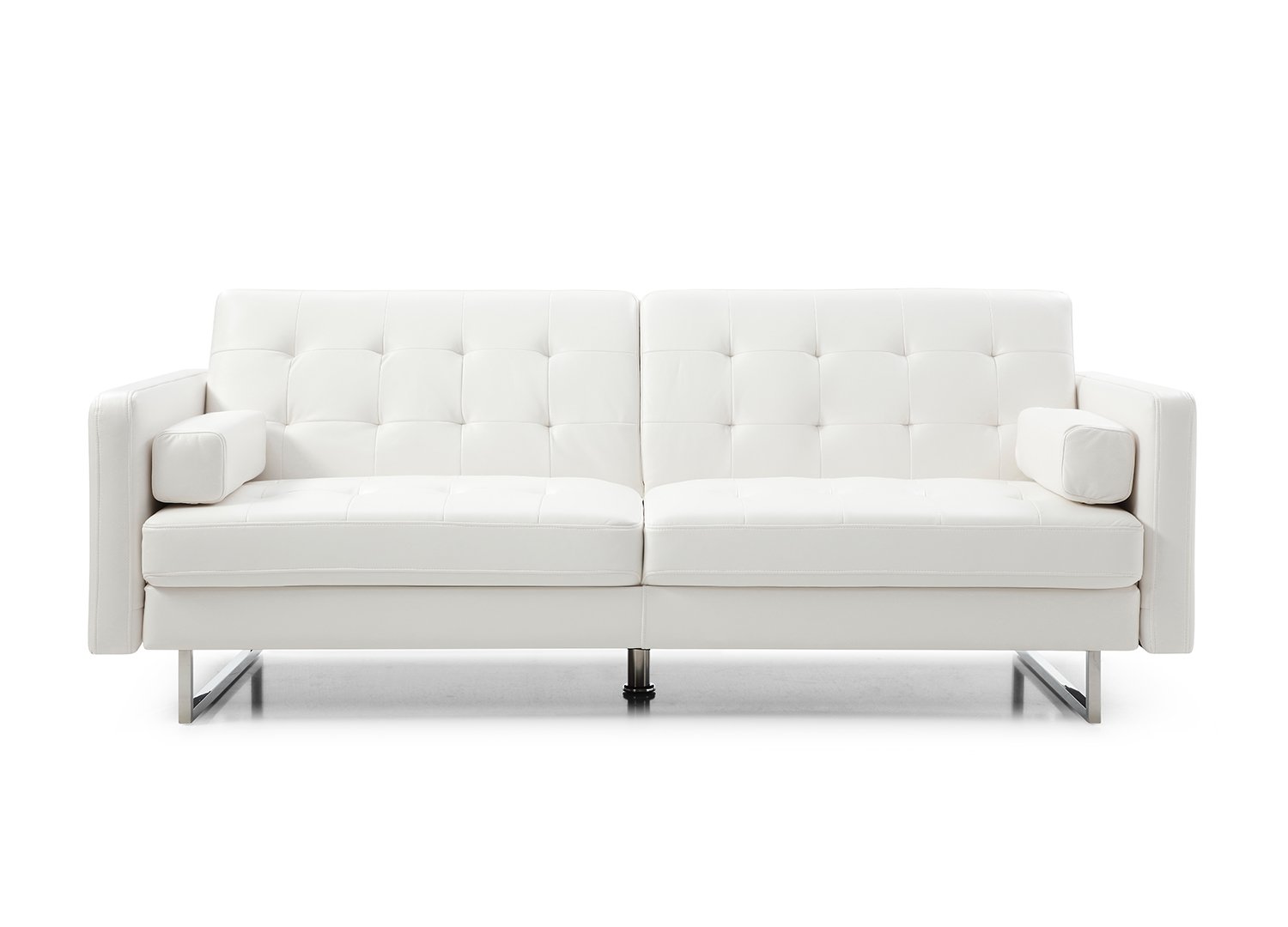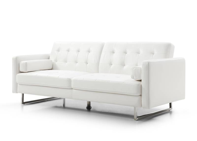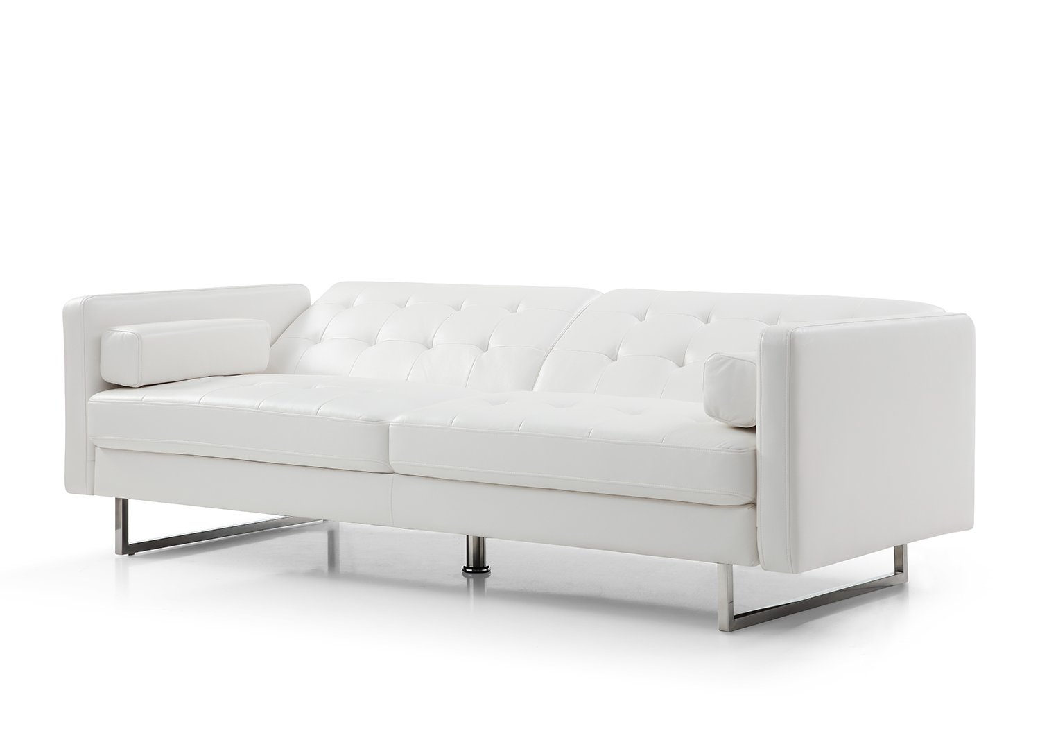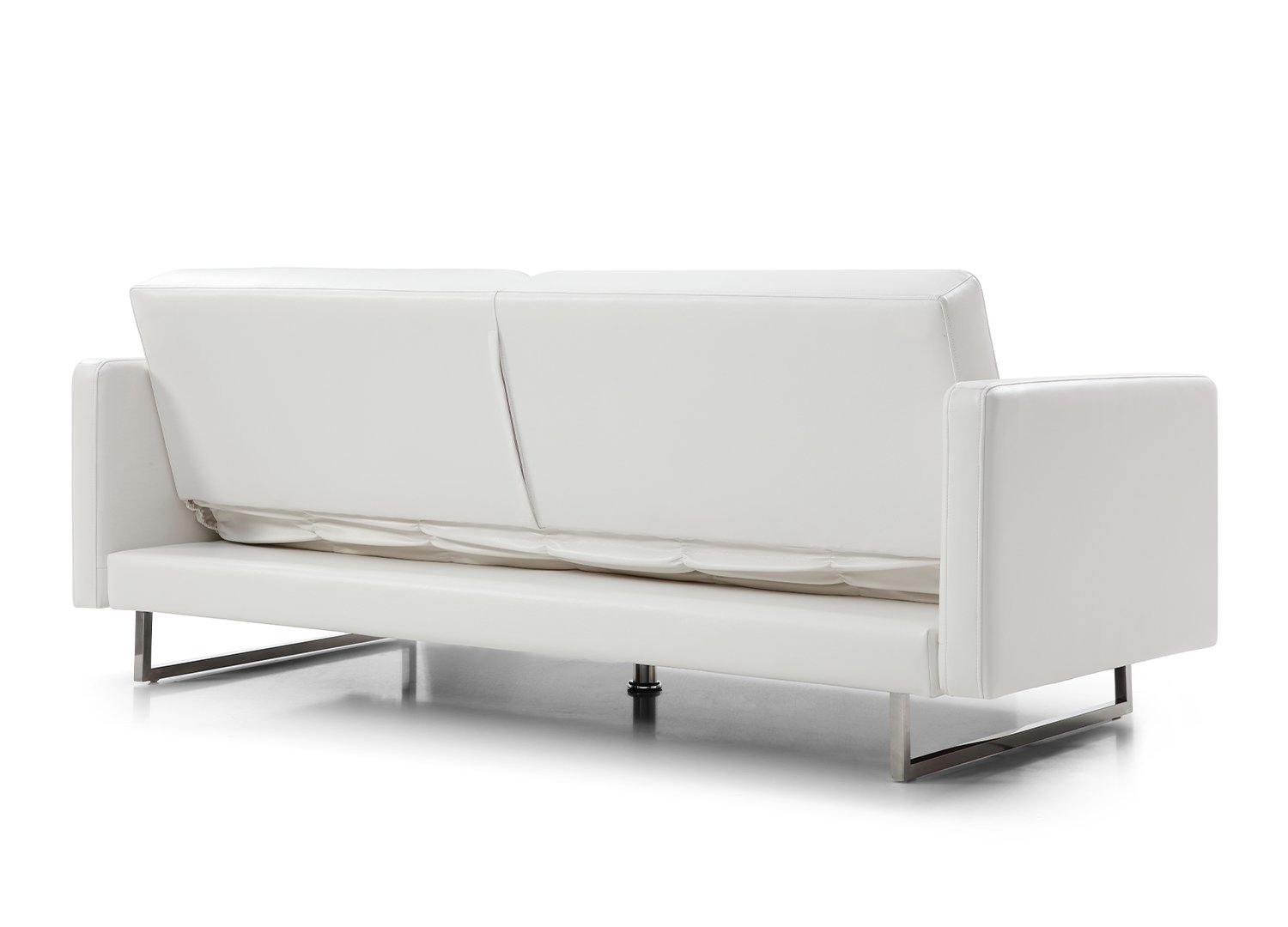Giovanni Sofa Bed: Sophistication White Faux Leather Pull Out Option Stainless Steel Silver Legs