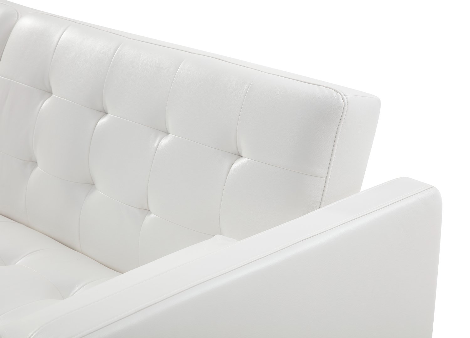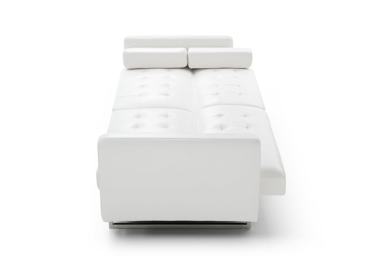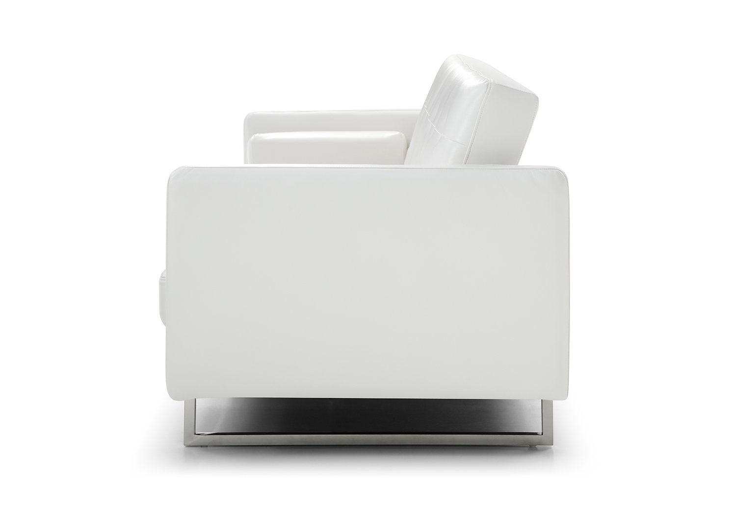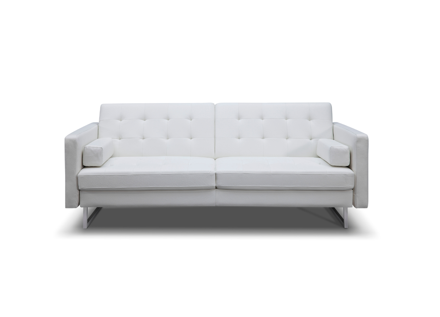 Giovanni Sofa Bed: Sophistication White Faux Leather Pull Out Option Stainless Steel Silver Legs