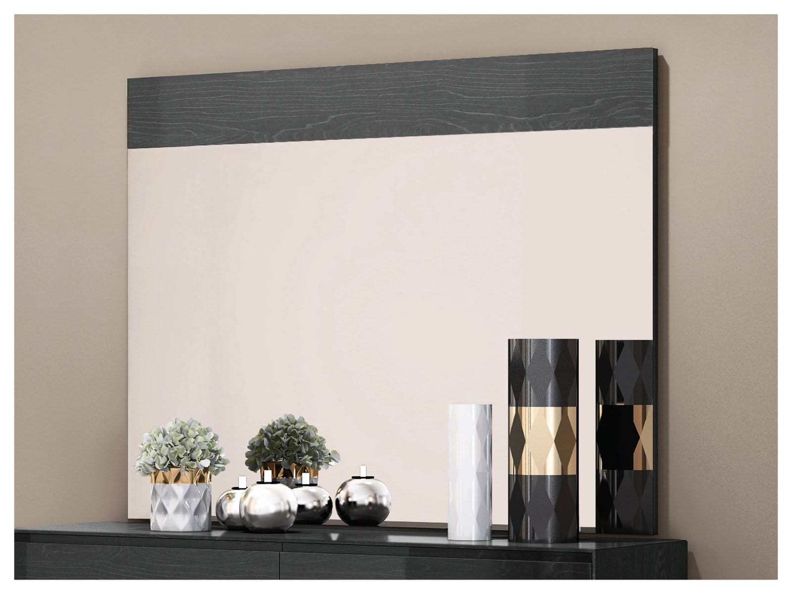 High gloss white or high gloss gray. Dresser sold separately. This mirror completes the luxurious Malibu Bedroom Collection .
