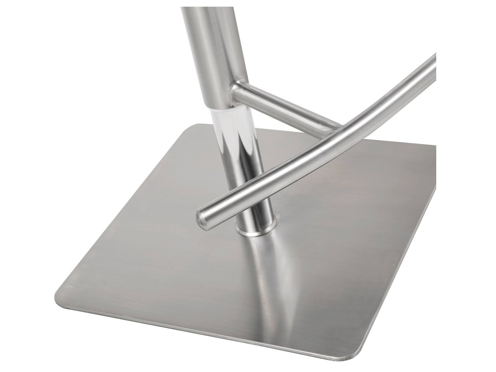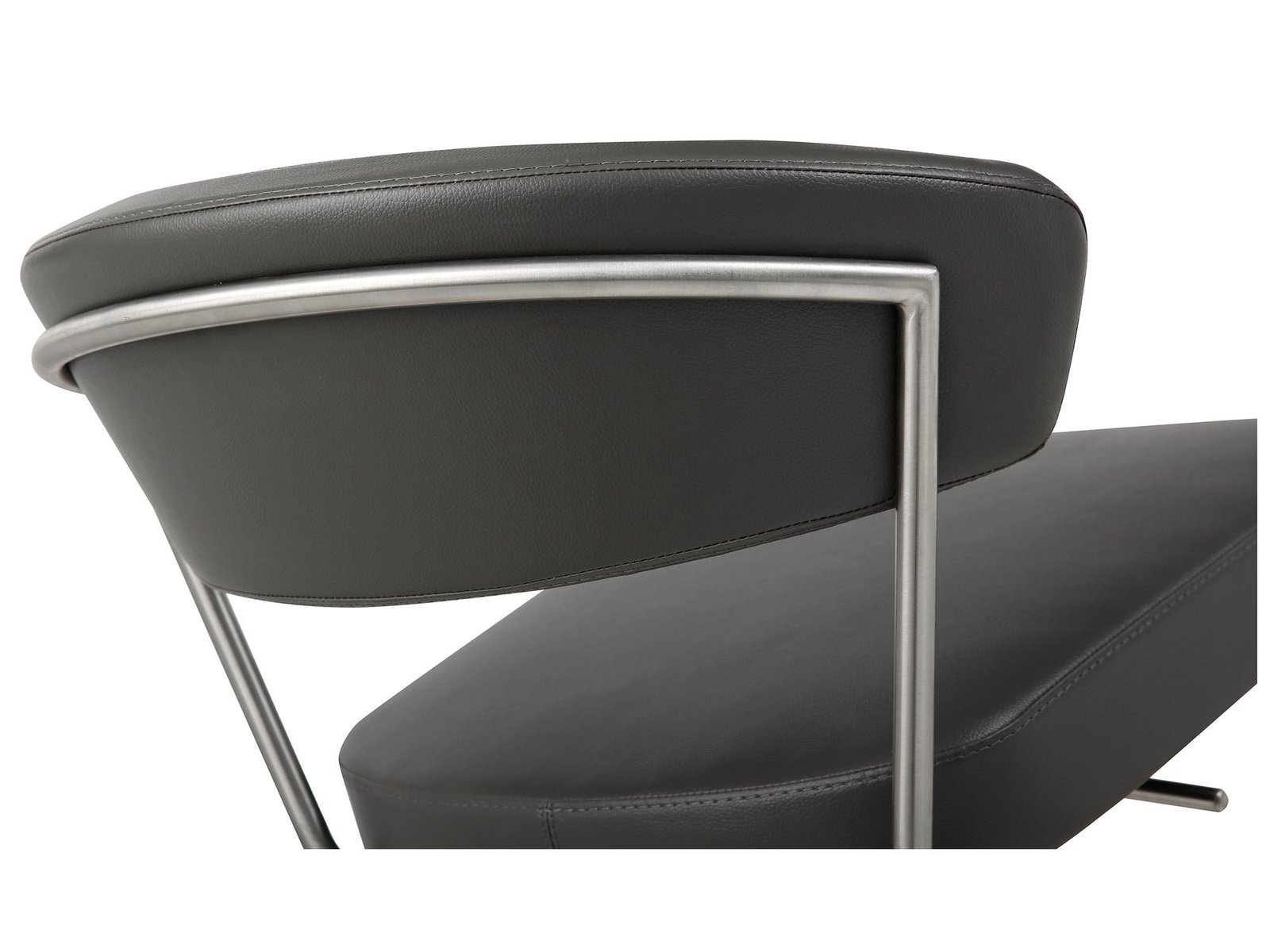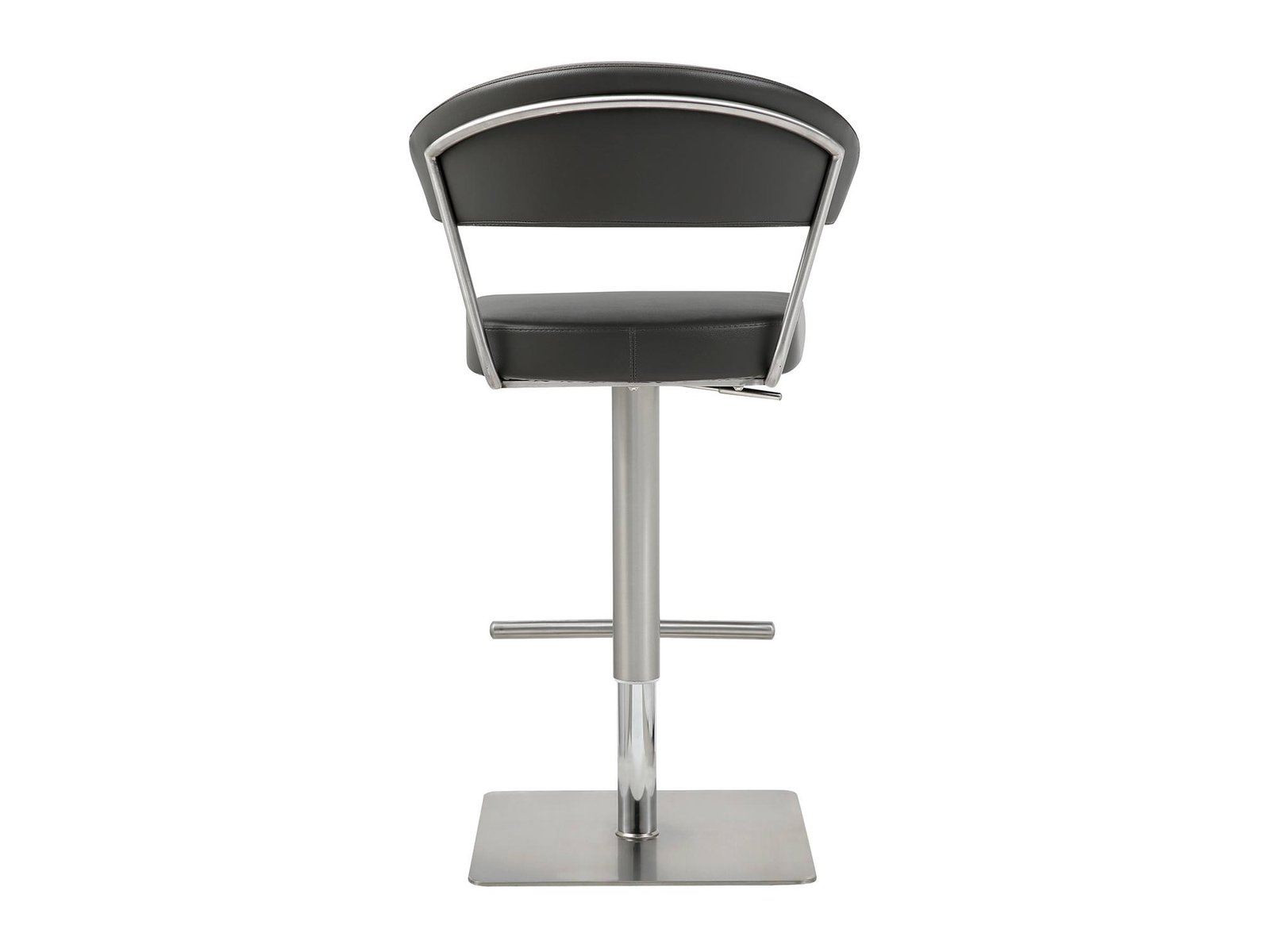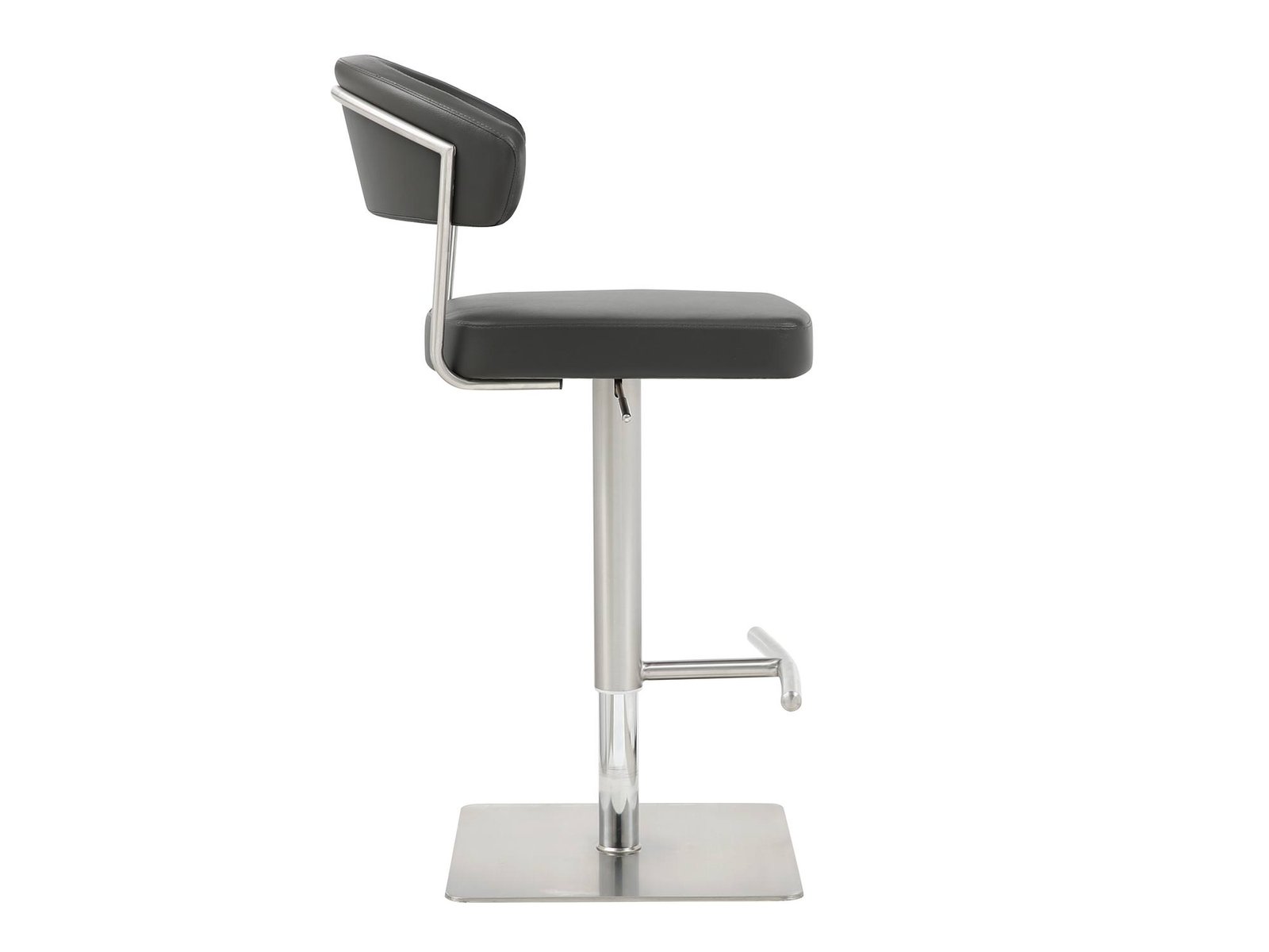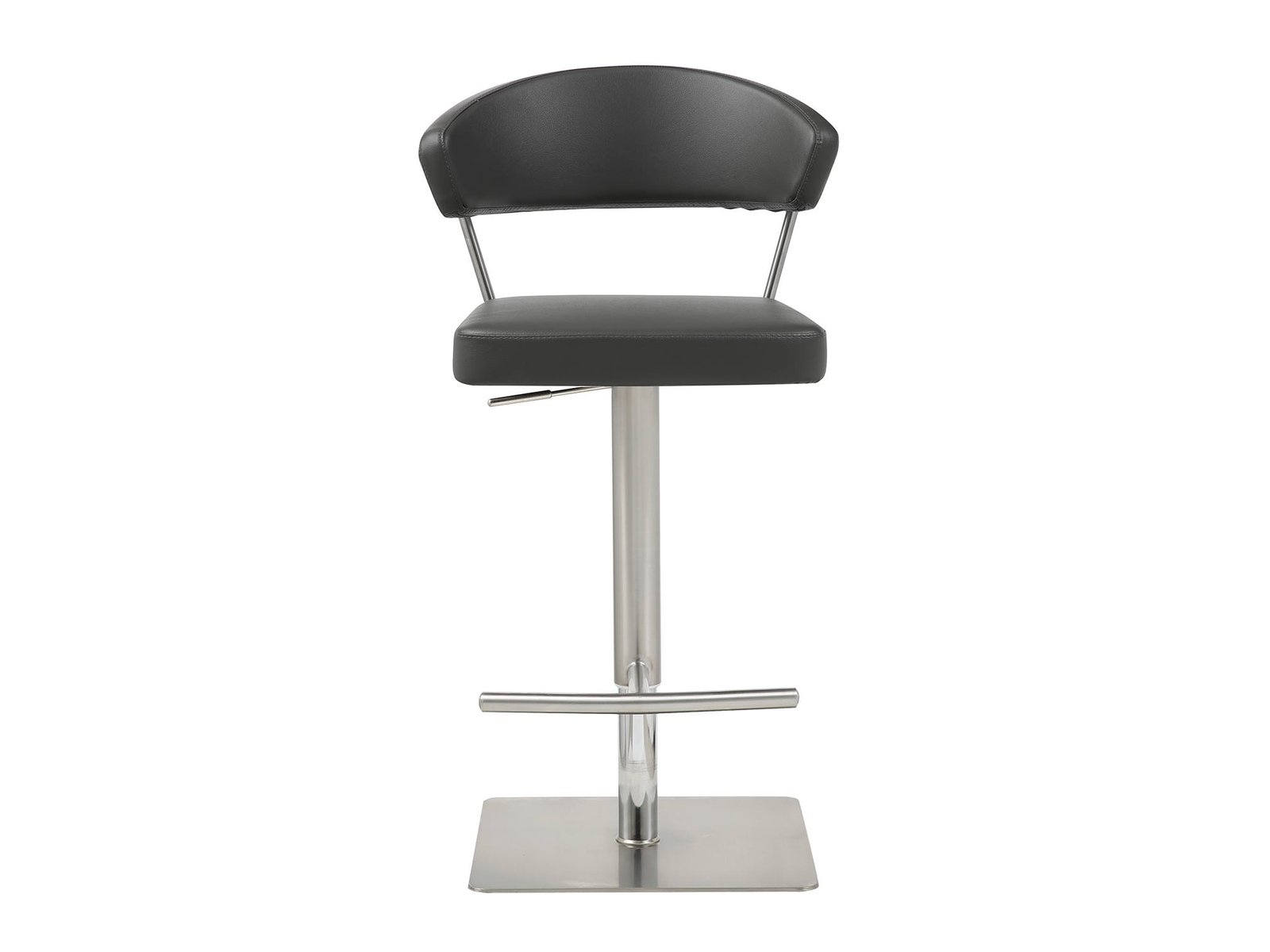 Maureen Barstool, Available in White Faux Leather or in Dark Grey Faux Leather, Adjustable Height with Gas Lift, T-shape Footrest and Square Brushed Silver Stainless Steel Base.
