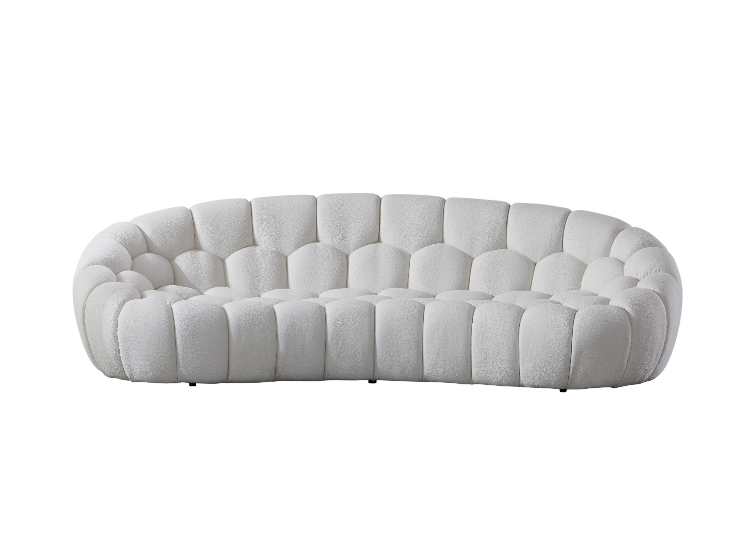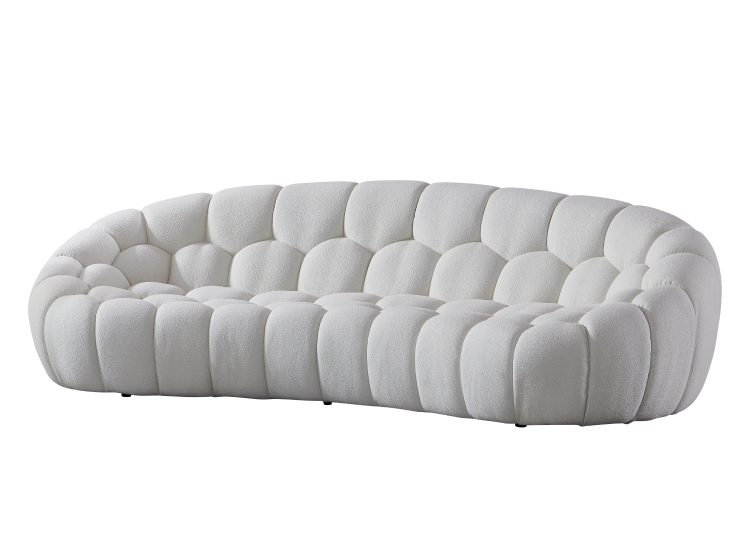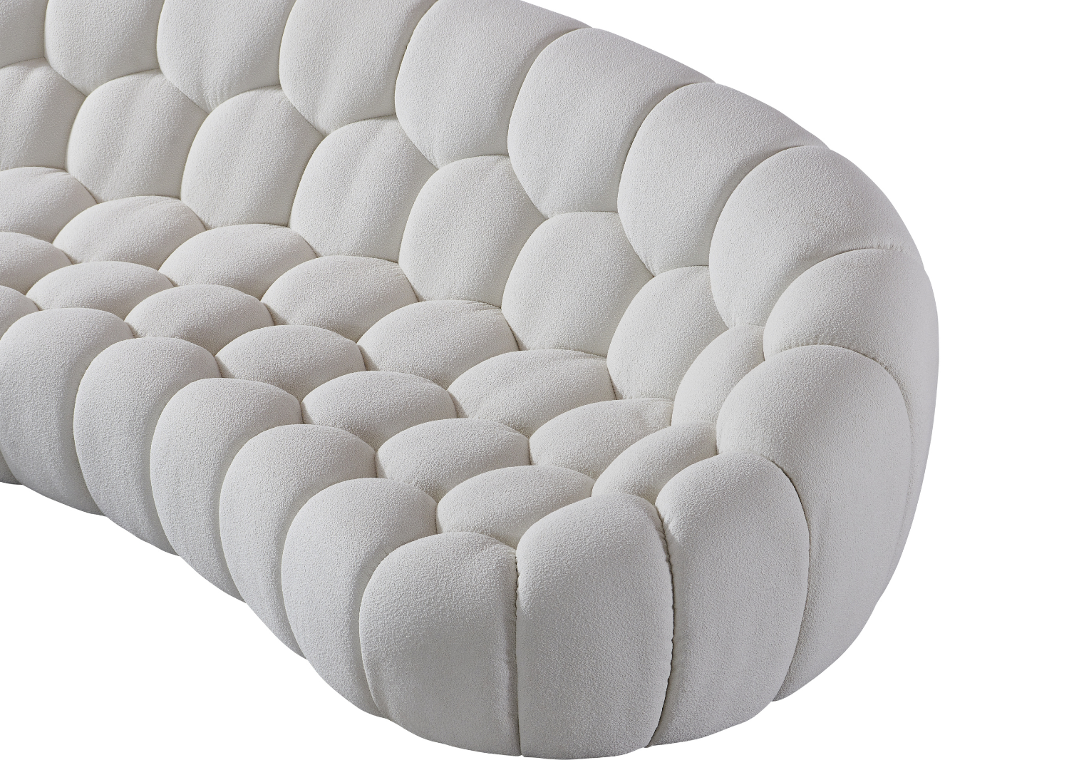 Nest Sofa Curve Shape Upholstered in White Boucle Fabric