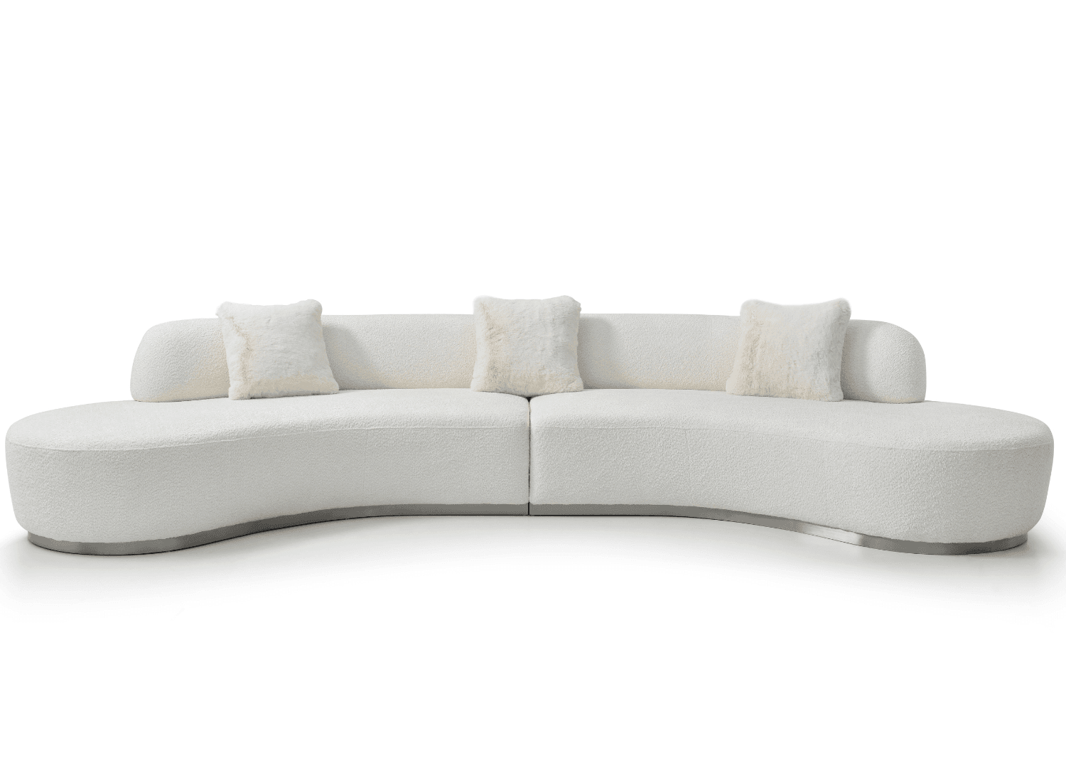 Perla Curved 4 Seater Sofa, in Dark Grey or White Boucle Fabric, Brushed Silver Stainless Steel Base. Complete the Perla living room collection with the Perla Swivel Accent Chair .